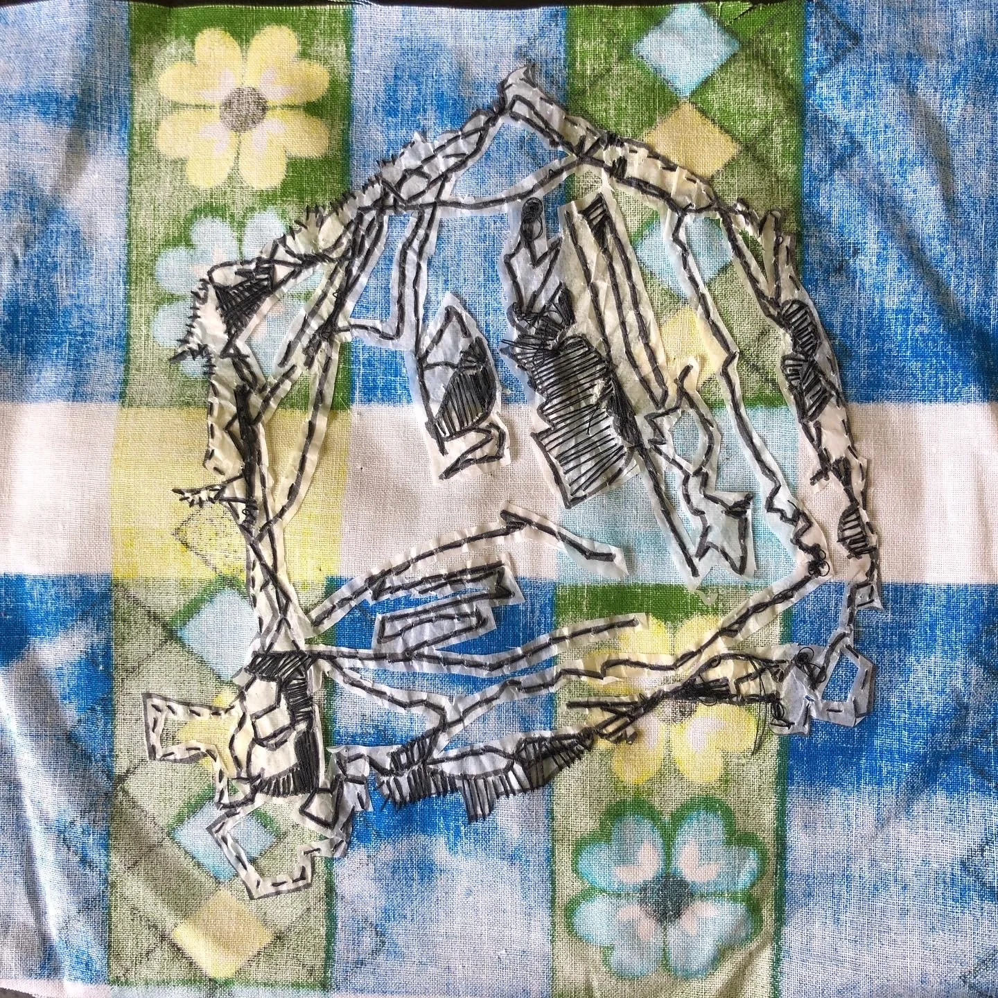 Visible, Mixed media (vintage fabric, thread, tracing paper), 25cm x 25cm